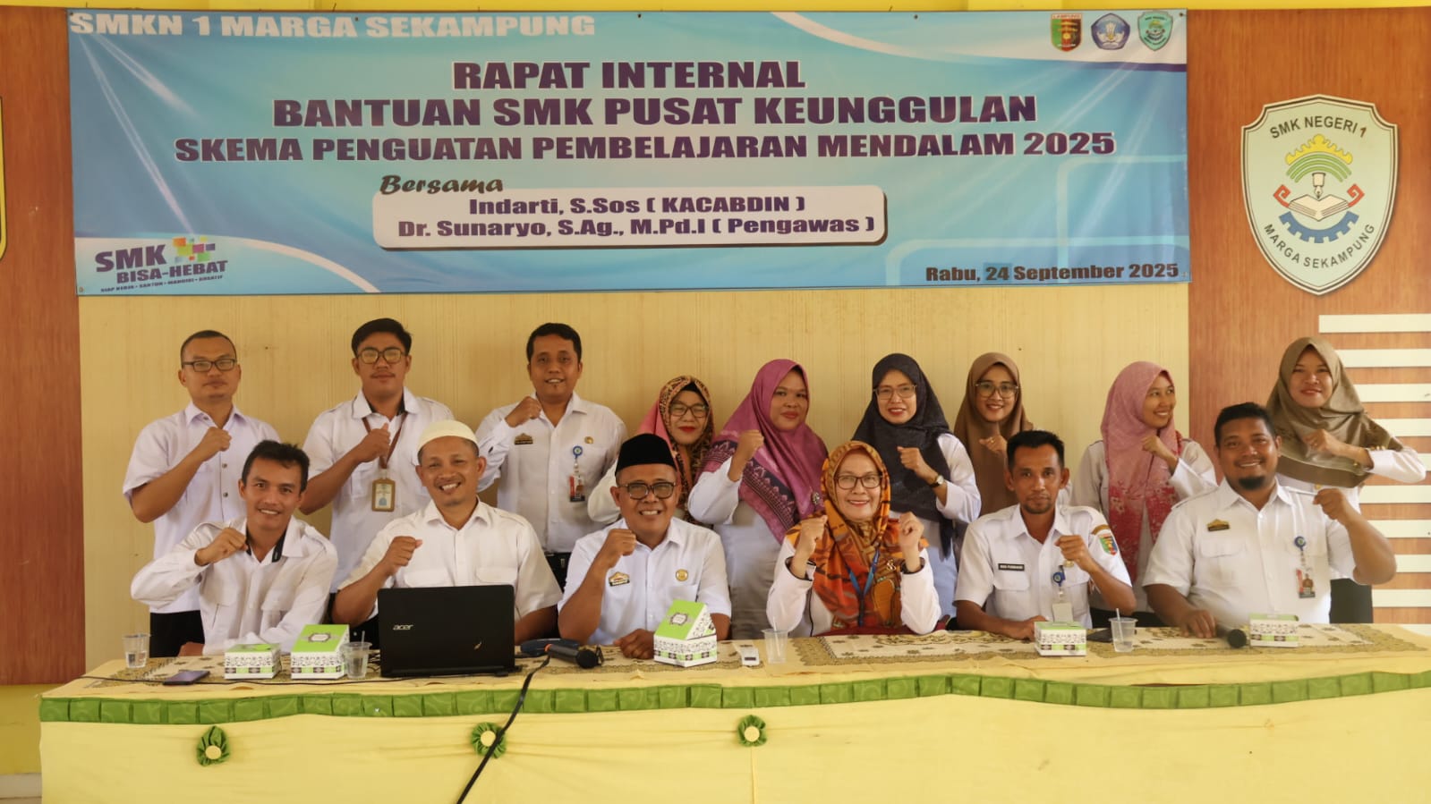 Pada hari Rabu, 24 September 2025, SMK Negeri 1 Marga Sekampung menggelar Rapat Internal Program SMK Pusat Keunggulan (SMK PK) dengan skema Penguatan Pembelajaran Mendalam 2025. Acara ini merupakan bagian dari upaya sekolah dalam meningkatkan mutu pendidikan vokasi melalui implementasi program strategis dari Kemendikbudristek.